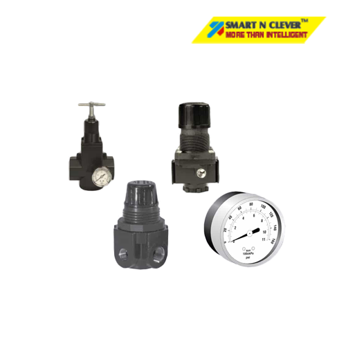 Pressure Regulators are used to maintain constant output pressure in compressed air systems, regardless of variations in input pressure or output flow. It is wise to use pressure regulators in blow off application. They are also useful in controlling pressure and flow rates for air operated conveyors like the Ring Vac. They can control cooling rates with vortex tube and panel coolers as well by adjusting the air line pressure.